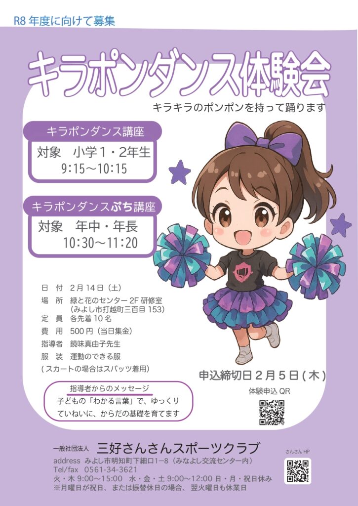 ・2月14日(土)キラポンダンスぷち体験会について